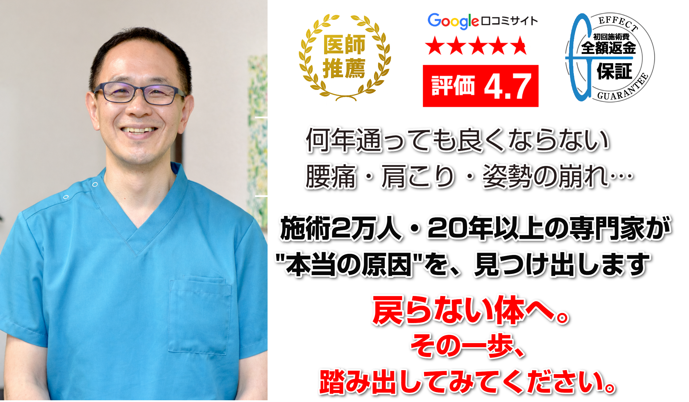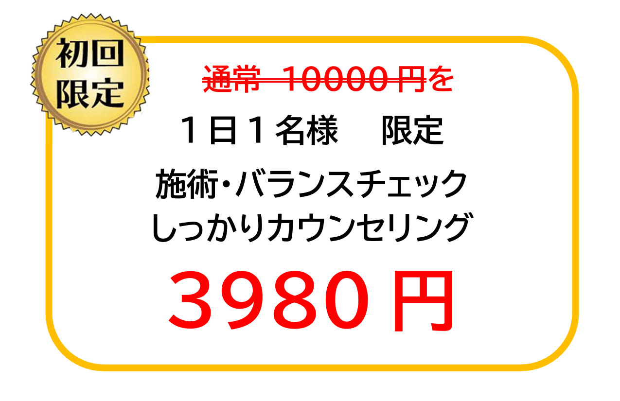 当院の施術にご満足、納得ただけなかった場合は、初回施術費を全額返金致します。
