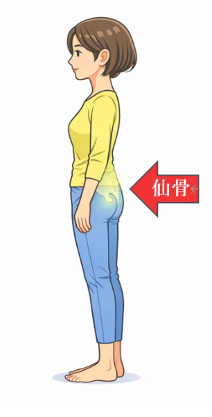 お尻の中心にある仙骨をスッと前に運ぶ感覚で歩くと、脚は自然についてくるだけになります。踏ん張らない。力まない。これが体への負担が最も少ない歩き方です。